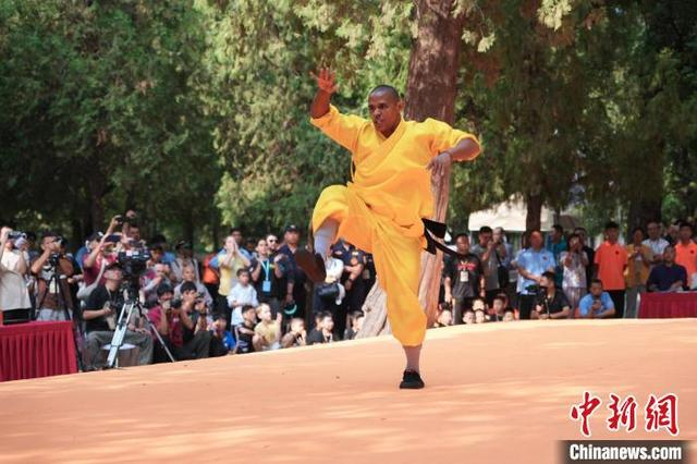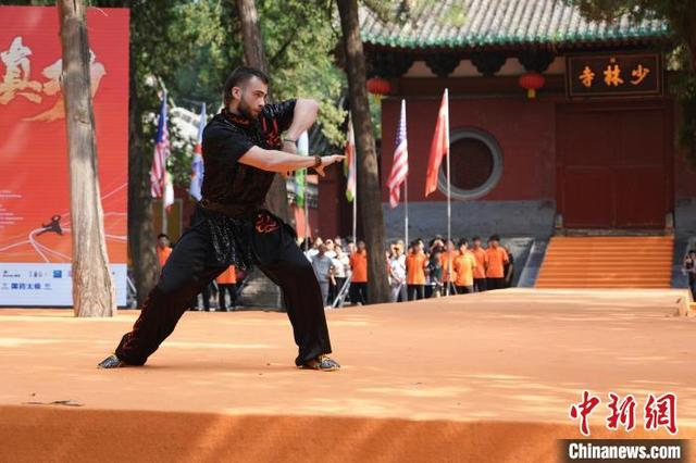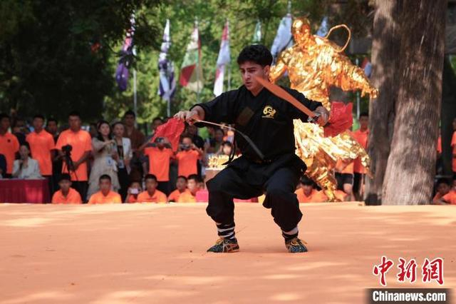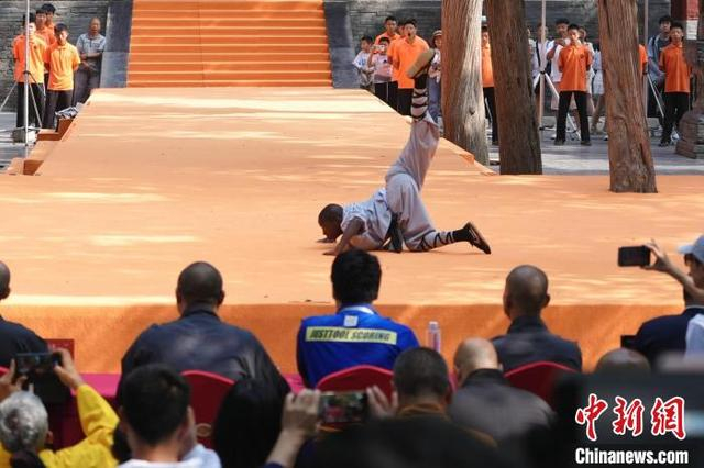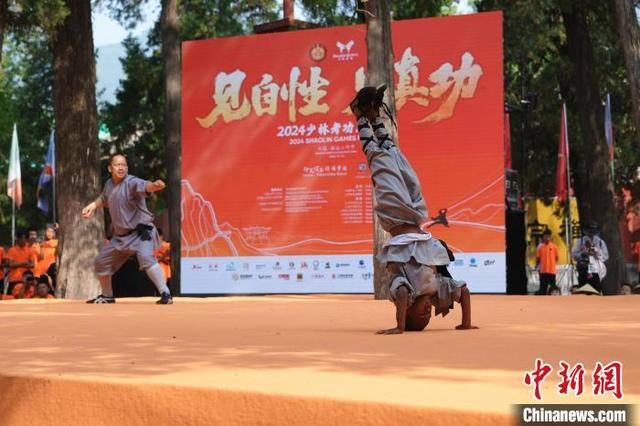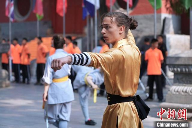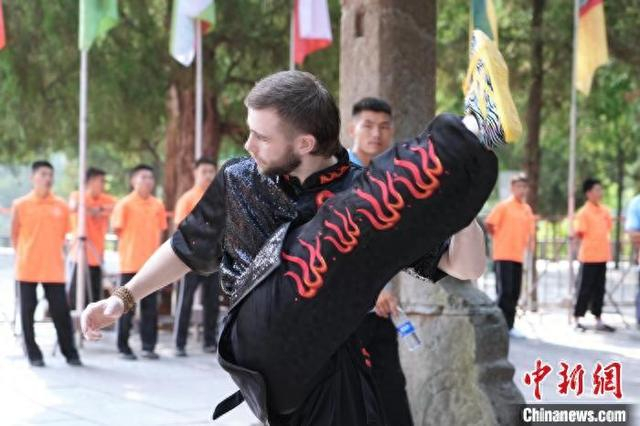 7月14日,河南登封,2024少林考功总决赛继续在中国嵩山少林寺举行。海内外的少林功夫习练者,除在台上激烈比拼,台下热身备赛等也精彩不断。图为少林“洋弟子”在比赛。中新社记者 李超庆 摄