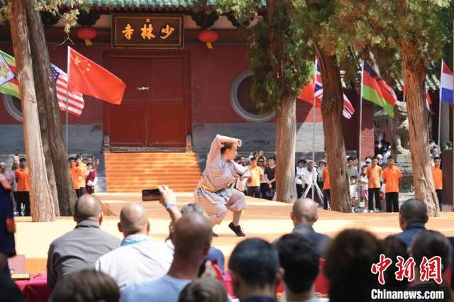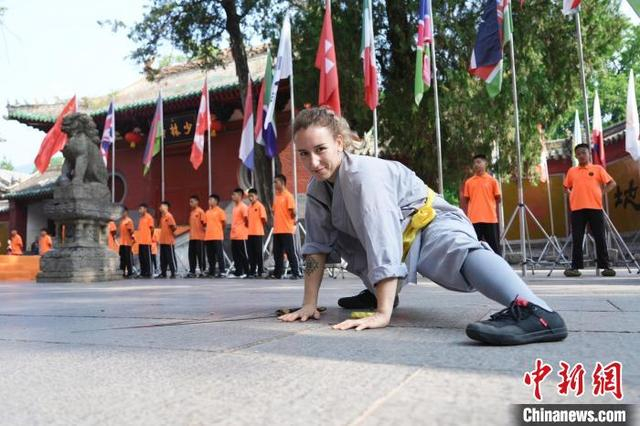 7月14日,河南登封,2024少林考功总决赛继续在中国嵩山少林寺举行。海内外的少林功夫习练者,除在台上激烈比拼,台下热身备赛等也精彩不断。图为少林“洋弟子”在热身备赛。中新社记者 李超庆 摄