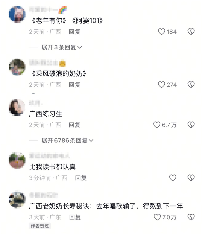 更有人找到了疑似广西老奶奶长寿的秘诀:去年唱歌输了,得熬到下一年。