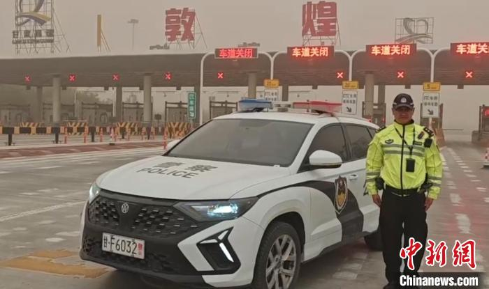 图为酒泉交警对道路实行临时交通管制。 酒泉交警供图针对新一轮大风沙尘天气,甘肃省气象局3日下午启动重大气象保障(沙尘暴)Ⅳ级应急响应。截至17时,甘肃金昌、武威等市已发布沙尘暴黄色预警信号:预计当日夜间到4日白天,两市将出现能见度小于1000米的沙尘暴,沿沙区还有能见度小于500米的强沙尘暴。