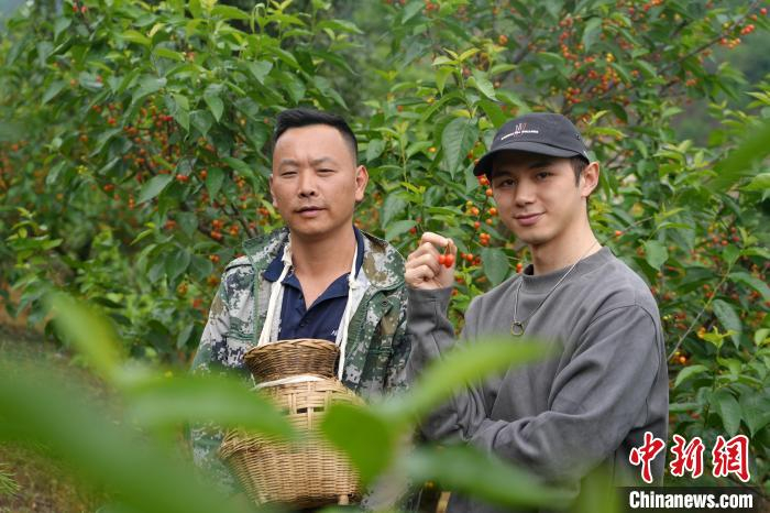 张寻在阿栗村农户樱桃园了解种植情况。蒲文思 摄目前,张寻的茶饮品牌已组建起一支年轻团队,并与多位农户建立了长期合作关系。张寻希望,在农业的“慢节奏”与品牌传播的“快效率”之间,探索出一条可持续发展路径,构建以创意茶饮为载体的农产品传播平台。