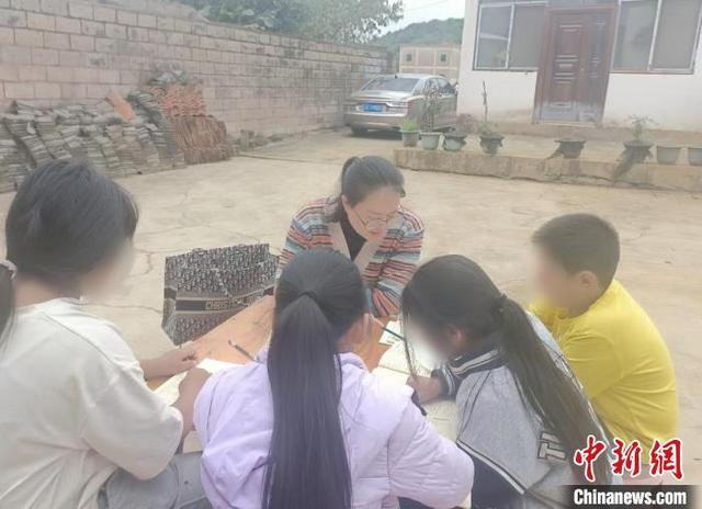 杨云梅为留守儿童辅导作业。受访者 供图2024年,杨云梅加入丘北县“爱心妈妈”团队,她利用周末和放学放假时间,通过面谈、电话等沟通方式,不定期开展学生心理健康辅导和家庭教育心理帮扶。