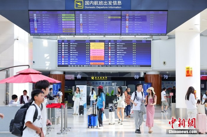 5月5日,海南海口,旅客在海口美兰国际机场出行。当日是“五一”假期最后一天,海口美兰国际机场迎来返程客流高峰。中新社记者 骆云飞 摄