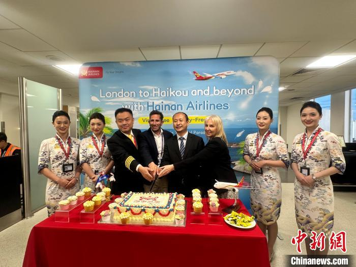 图为活动现场。 记者 欧阳开宇海南航空方面介绍,伦敦—海口直飞航线正式开通,为英国旅客提供了直达海南的便捷空中通道,为探索自贸港投资机遇和体验热带滨海风情提供便利。此航线的开通恰逢海南59国免签政策进一步放宽,为更多欧洲游客畅游海口火山奇观、探秘文昌航天基地、尽享三亚度假天堂提供了便利,助力海南打造国际旅游消费中心。(完)