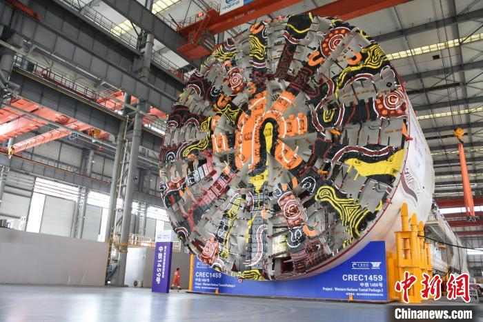 5月8日,在中国中铁工程装备集团有限公司总装车间,中铁1459号盾构机正在做发货前准备工作。该盾构机开挖直径达15.7米,整机长度约113米,将应用于澳大利亚西部港湾项目建设,是目前中国出口海外最大直径盾构机。 王宇 摄