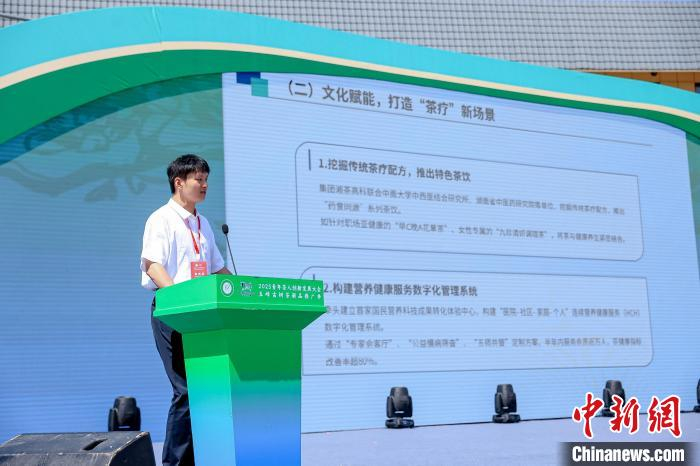 青年茶人在现场进行讲演。张庆 摄五峰是中国名茶之乡、万里茶道茶源地。近年来,五峰将茶产业与生态保护、文旅融合、富民增收深度融合。2024年,全县茶园总面积达22.2万亩,茶叶产量突破3万吨,产值突破14亿元。