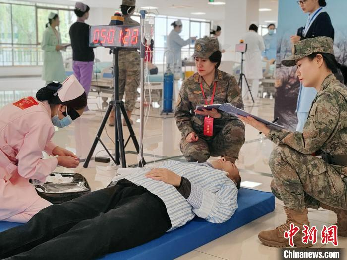 5月12日上午,在联勤保障部队第九四〇医院开展的“5·12”国际护士节系列主题活动中,微光条件下静脉穿刺技术比武现场。张扬晨 摄