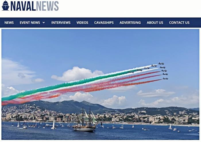 意空军飞行表演队从“韦斯普奇”号上空掠过。图/法国《海军新闻》网站比如意大利的“韦斯普奇”号风帆训练舰,服役已近1个世纪,其间多次环球航行,现在依旧是该国海军的骄傲。