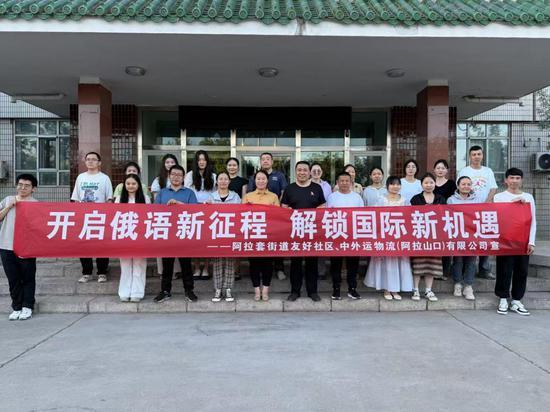 开班仪式合影留念。阿迪莱·库那洪 摄中外运物流(阿拉山口)有限公司副总经理张娟红表示,此次“俄语连心 社区共融”活动是搭建企社共驻共建互动平台的有益尝试,精准对接了外贸企业职工的技能提升需求,更是优化口岸营商环境的生动实践。