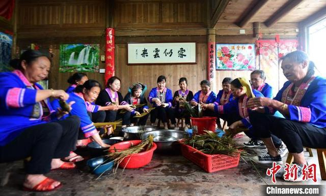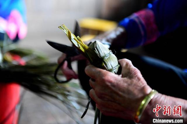 图为村民在包粽子。潘志祥 摄