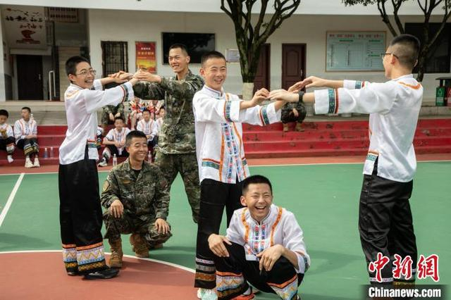 图为武警官兵与少数民族学生一起做游戏。李笑仙 摄