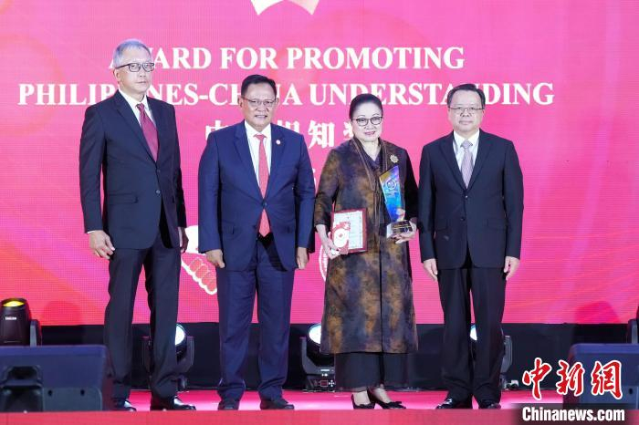 当地时间6月3日,第五届“中菲相知奖”颁奖仪式暨第十四期中菲人文之驿在马尼拉举行。图为菲律宾前参议员科赛腾(右二)获颁“终身成就奖”。中新社记者 张兴龙 摄