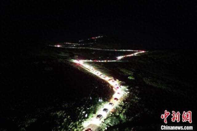 凌晨1点的夜空中挂满星星,罕山上也“挂”满了人。排队上山的越野车绵延数公里,陡峭的盘山公路在车灯照射下宛若游龙。骑摩托的、步行上山的人也不少,偶尔还能看到骑马的。