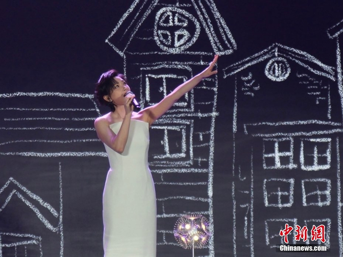 6月9日晚,2025年中国网络文明大会“科技·点亮网络文明时空”主题活动在安徽合肥举行。图为万茜在主题活动现场演唱歌曲《总有美好在路上》。李太源 摄