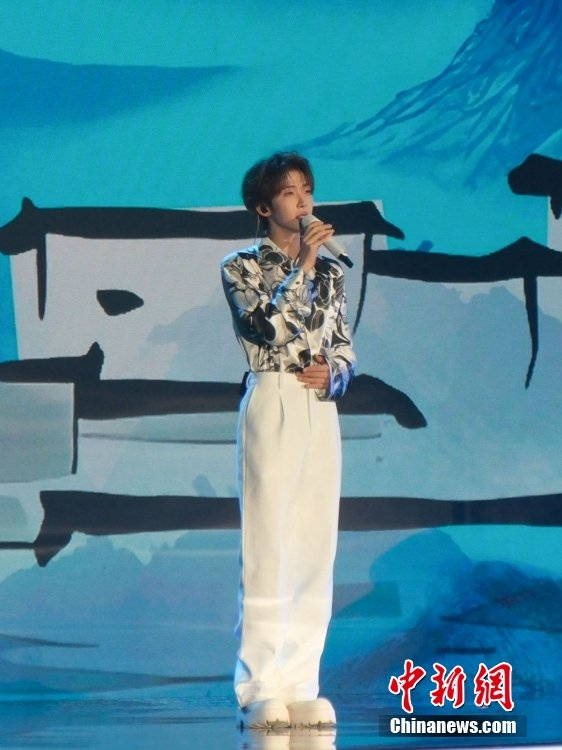6月9日晚,2025年中国网络文明大会“科技·点亮网络文明时空”主题活动在安徽合肥举行。图为歌手刘宇在主题活动现场演唱歌曲《岁岁亦安》。李太源 摄