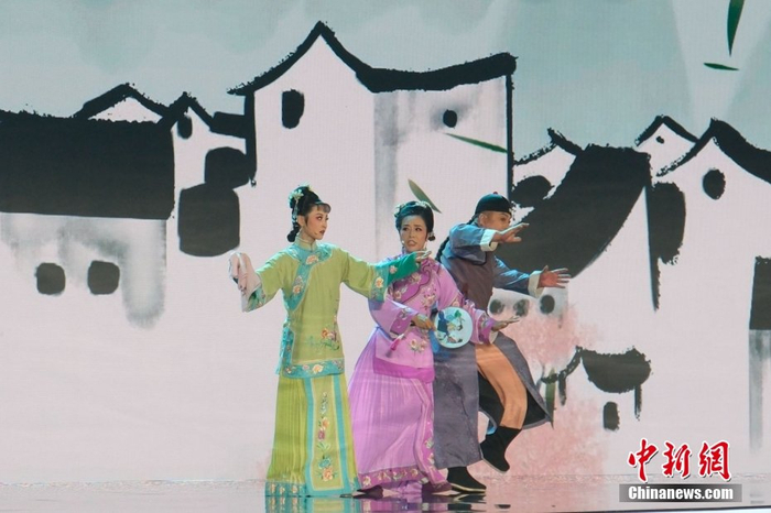 6月9日晚,2025年中国网络文明大会“科技·点亮网络文明时空”主题活动在安徽合肥举行。图为主题活动现场表演黄梅戏《六尺巷》。李太源 摄