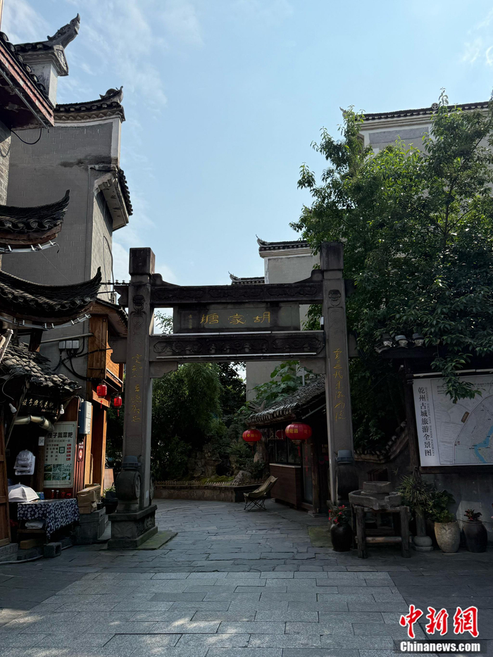 凡古城都必有一处风水宝地。走进城门内,映入眼帘的是一口池塘,名叫胡家塘,这里就是乾州古城一处绝佳的风水宝地。
