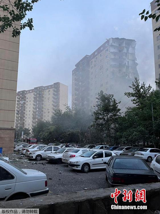 据《以色列时报》报道,当地时间6月13日,以色列国防军证实,以军已发起了一场针对伊朗核计划的空袭行动。图为伊朗德黑兰,一栋受损建筑冒出浓烟。