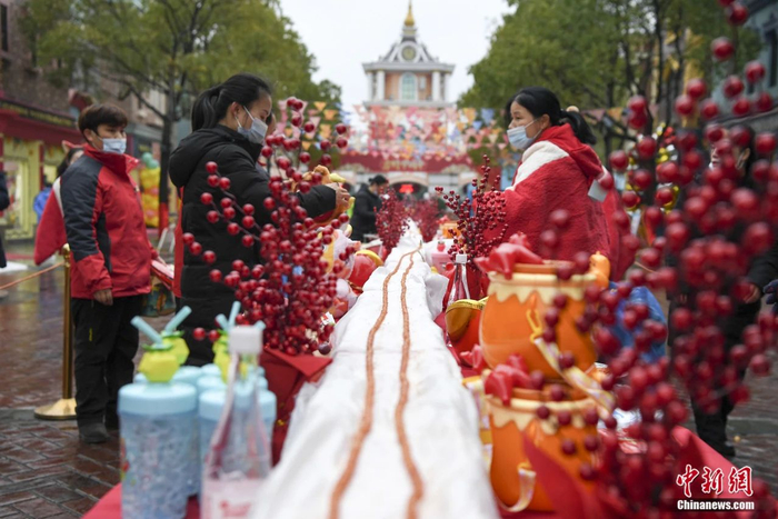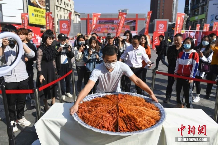 直径近1米的巨型元宵亮相平江。杨华峰 摄由于制作工艺简单、制作成本低廉且风味独特,这种面筋小吃迅速火遍大江南北,深受市场欢迎。几年时间不到,平江县90%以上的酱干作坊都改做辣条。尤其是春节后,各辣条厂还会上演全村“抢人”名场面。