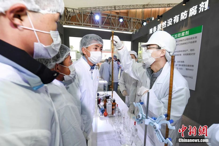 辣条专业班学生进行实操考核。杨华峰 摄为辣条行业输送人才的辣条专业班也于2020年9月应运而生。该辣条专业班由平江职业技术学校与企业合作共建,共有59位学生,开设了挤压膨化机理、食品质量与安全、市场营销等专业课程。