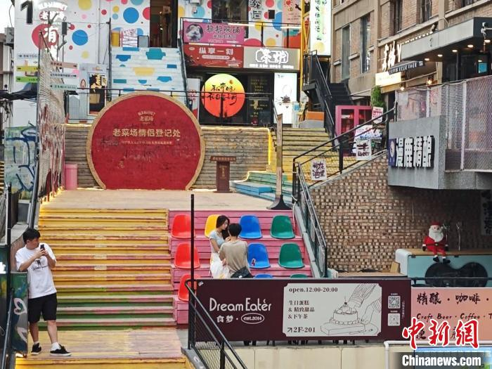 图为民众在西安老菜场文化创意街区拍照。党田野 摄据介绍,本次改造在保留老厂房原有结构的同时,增加了电梯、酒吧、艺术展区等设施。这种市井与时尚的巧妙混搭,吸引不少年轻人前来拍照、消费,也令老菜场街区的人气不断升温。