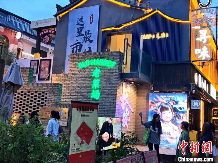 图为西安老菜场文化创意街区夜景。党田野 摄“来店里消费的不仅有年轻人,还有很多买完菜,顺便来喝茶、喝咖啡的叔叔阿姨。跟他们聊天时我们才发现,原来他们也曾年轻过、潮流过。对于审美和美食,大家有很多共同话题,我跟很多老街坊都处成了朋友。”杨楠称,老菜场街区的大量客流,以及浓浓的烟火气和人情味,令他最终决定在此“扎根”。