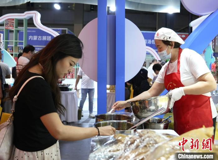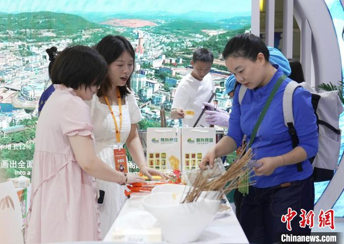 图为参观者在一参展企业展台前试吃。 景诗雁 摄