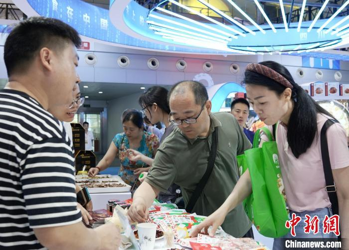 6月20日,2025全国吃货季(重庆站)暨第四届成渝美食工业博览会在重庆开幕。本届博览会围绕渠道消费、家庭消费、户外消费等多元化场景,汇集调味品、预制化食品、休闲食品、火锅食材等产业链,设置有川渝融合、特色优势产区、火锅食材采购等展区,超500家企业参展,3000余种产品展出,吸引民众参观选购。图为参观者选购商品。 景诗雁 摄