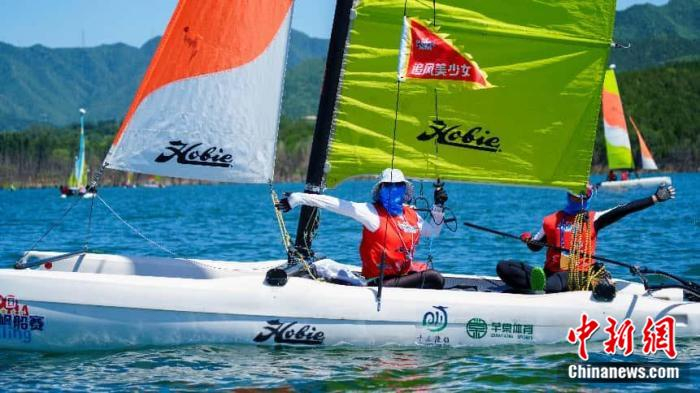 比赛现场。主办方供图“家帆赛是一个很好的平台,很多选手通过家帆赛接触到了帆船运动,驶向更加广阔的海洋。”参与汇水仪式的家帆赛代表戴雍伦说。作为家帆赛的重要参与成员,青少年选手从来都备受关注。此次北京十三陵站的比赛,同样有好几位青少年船长。“晨风熠浪”队中,有两位来自北京的少年因帆船而不断深化他们的友谊。15岁的傅冯子熠,参加过许多世界级帆船赛事;他的好伙伴公博晨,热爱表演和音乐的同时也享受着帆船运动的快乐。帆船是他俩一大共同点,亦是联结他们感情的重要结点。这份纯粹的热爱,让两位好朋友格外珍惜中国家庭帆船赛这个特别的平台——因为它,他们得以在风浪中共享扬帆的纯粹快乐。对他们而言,与好伙伴一起感受帆船的魅力,本身就是最大的收获。还有T1组别的R&R船队,舵手是还不满14岁的董思雄。他在不久前结束的HOBIE16亚洲锦标赛上,与队友一起获得了公开组第三名的好成绩。作为一名年纪小小的航海高手,他与爸爸组队一同参赛。