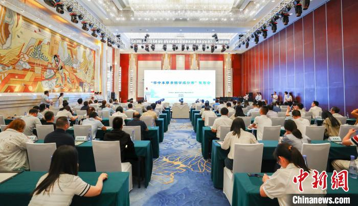 华中本草多组学成分库在武汉发布。 胡梦佳 摄华中地区是我国重要的中药资源宝库。湖北作为炎帝神农故里、“药圣”李时珍的故乡,拥有大别山、武陵山、秦巴山、幕阜山、江汉平原等五大中药材优势产区,中药材是湖北省十大重点农业产业链之一。