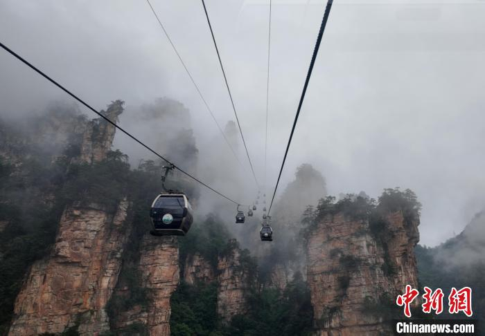 6月23日,张家界国家森林公园天子山索道有序运行中。吴勇兵 摄景区恢复开放后,张家界国家森林公园进一步加强值班值守,全面排查各类安全隐患,对游览步道、基础设施及特种设备等进行细致检查和维护,对金鞭溪等水域卫生进行全面清理,为游客提供安全、舒适的游览环境。同时,国网武陵源区供电公司还利用无人机、红外测温仪等设备对百龙天梯、索道等重点单位的供电线路、配电设施等开展“拉网式”排查,消除故障隐患。