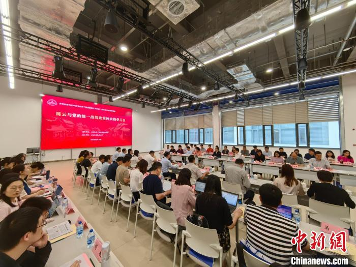 会议现场。 范宇斌 摄会上,上海市领导科学学会副会长兼文化领导力专委会会长陈麟辉,上海工程技术大学马克思主义学院院长、教授严运楼,中共一大纪念馆陈列研究部主任、研究馆员房中,复旦大学民族研究院暨国家四部委铸牢中华民族共同体意识研究基地研究员、秘书长鲁绍臣分别围绕“陈云在家乡青浦的农村调查”“陈云哲学思想中的统战思维”“陈云关于统一战线理论与实践的发展历程”“陈云边疆统战工作的历史实践和经验启示”等主题发言。