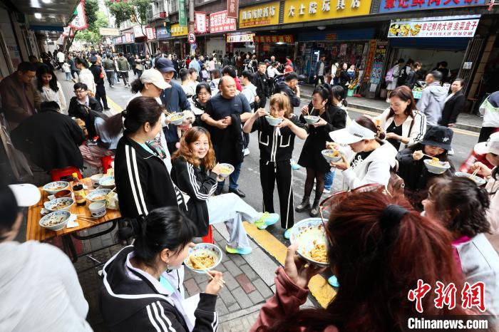 图为不少游客在南昌大士院“嗦”粉。刘思伟 摄一汤一粉一座城,有滋有味有南昌。在2025米粉产业交易会上,南昌市委常委、副市长安宝军向外界发出邀约:南昌有着悠久和丰富的米粉文化,米粉美食遍布全市大街小巷,欢迎大家到南昌的街头巷尾走走看看,品尝南昌味道,感受城市魅力。