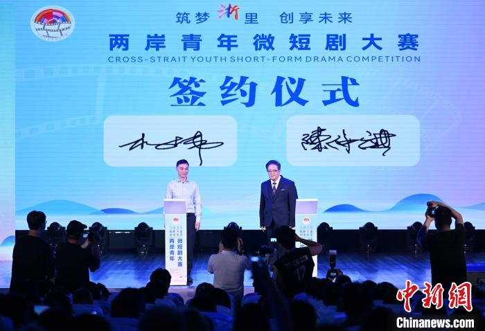 6月27日,横店影视城与台北市影音节目制作商业同业公会进行合作签约。中新社记者 王刚 摄“通过微短剧增进了解、消除误解。”