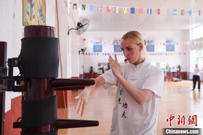 “啪!啪!啪!”山东烟台昆嵛山国际武术学校的练功房内,木人桩与拳掌的撞击声清脆有力。31岁的瑞士女子那塔丽屏气凝神,全身力量汇于掌心,反复练习咏春拳基本功。