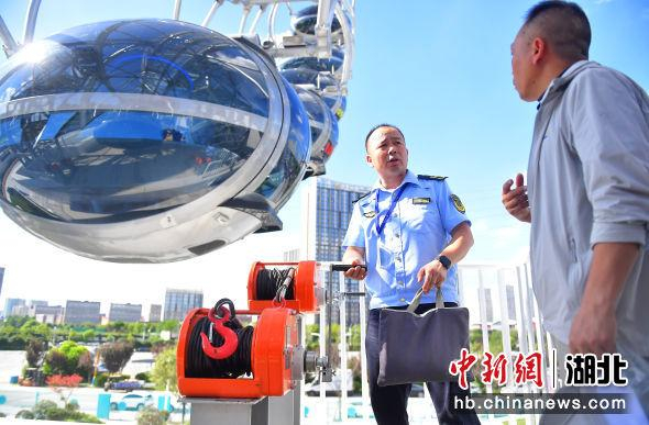 中新网湖北新闻7月2日电(蔡明珠)武汉最新地标“楚天之眼”摩天轮2日在武汉极地海洋度假区正式运营开转。开转前一天,武汉市市场监管执法人员为它做了个全身“体检”,拧紧每一道“安全阀”,确保广大游客在登高俯瞰感受武汉城市多元魅力的同时,能拥有满满的幸福感与安全感。