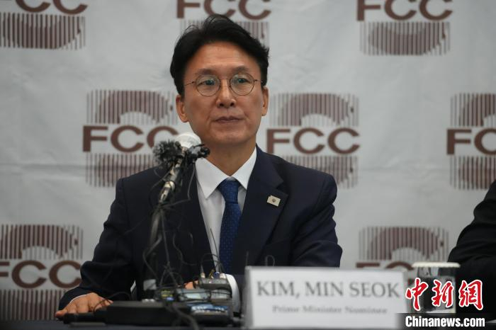当地时间6月17日,金民锡作为总理人选在首尔与外媒记者见面。中新社记者 刘旭 摄上月4日,韩国总统李在明提名共同民主党最高委员会委员金民锡为国务总理,并于同月10日向国会提交任命同意案。李在明表示,金民锡是能够引领国民克服危机和恢复民生经济的合适人选。