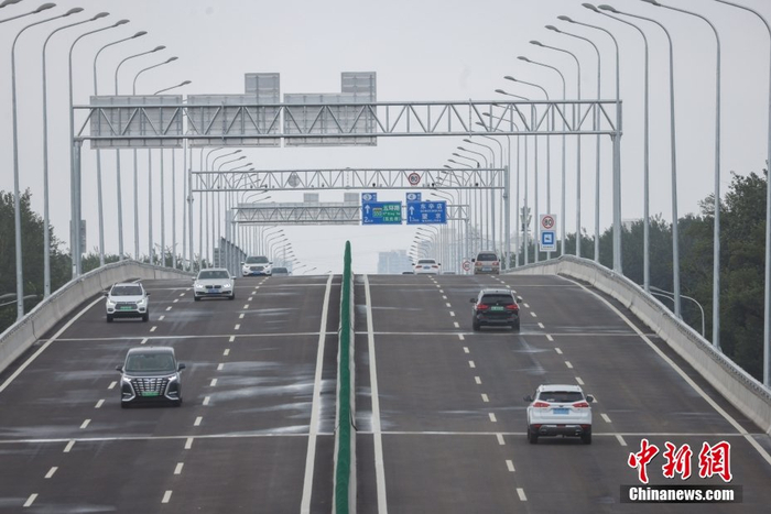 7月5日,京密路(太阳宫北街-机场南线)道路工程完工通车,这是继机场高速、京承高速之后,北京又增添一条东北方向的交通大动脉。通车后将进一步提升沿线区域交通服务水平,助力北京国际交往中心建设,为首都机场、新国展提供交通保障。图为车辆从太阳宫北街的起点驶入高架。中新社记者 贾天勇 摄