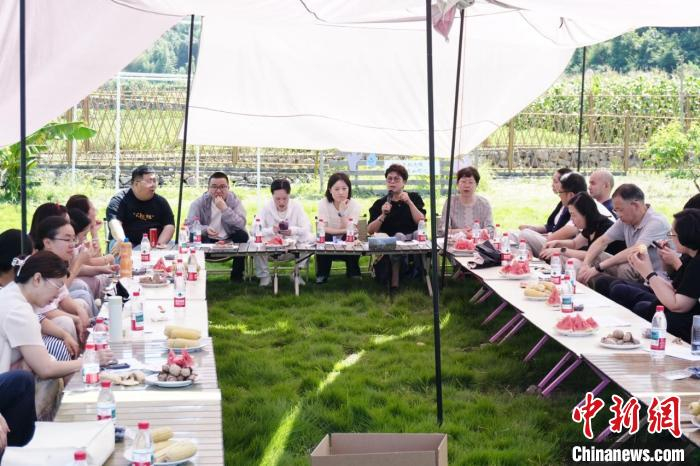 活动现场。海曙区委统战部供图活动现场,来自海曙区各镇(乡)街道新创客联盟联谊会电商、餐饮、健康服务等领域的“新创客”代表,现场认购了超过1300斤的农产品,并围绕产品包装、社群营销、轻食研发等展开头脑风暴,为山货下山打通更多路径。