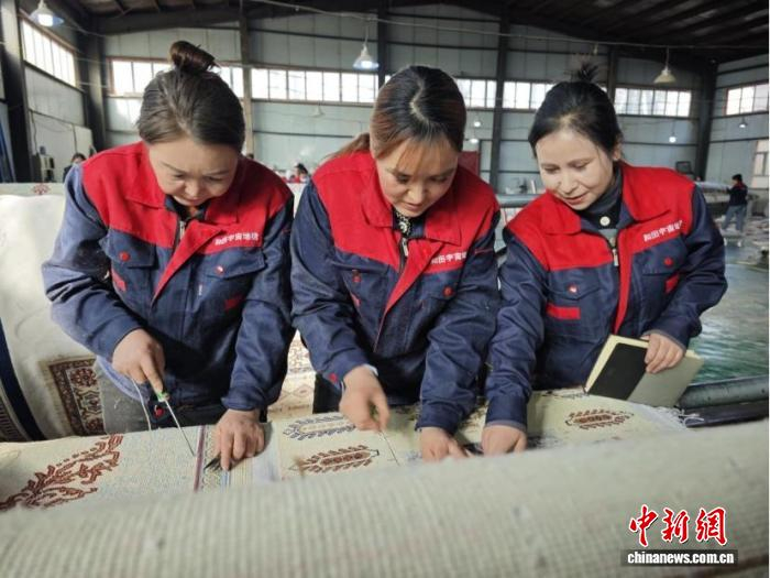 阿尔孜古丽(右一)在生产线上查看地毯编织流程工艺。闫兆霞 摄此举引发了一些质疑:“老祖宗传承的手艺,怎么能随便改?”“数字化设计会丢失传统的灵魂。”然而,阿尔孜古丽没有放弃,她认为传统并非一成不变,而是应随着时代发展不断创新,才能让这门技艺得以延续。