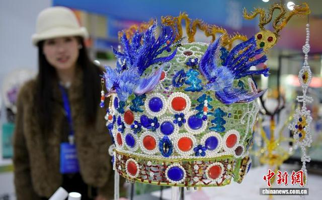 12月26日,观众在展会上观赏“琉璃凤冠”。中新社记者 张勇 摄