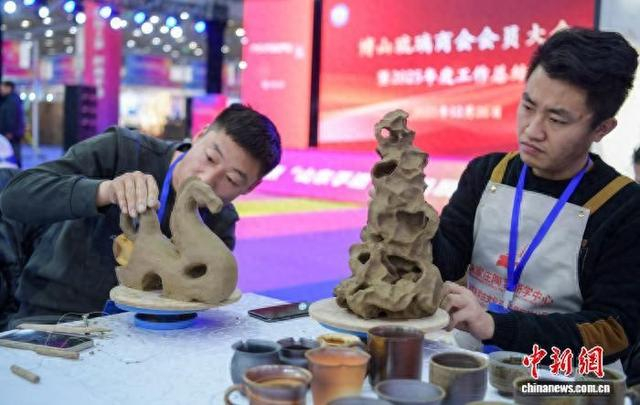 12月26日,手工艺人正在展示陶艺拉坯技艺。当日,2025山东工艺美术博览会暨“山东手造”精品展在济南舜耕国际会展中心开幕。本届展会以“弘扬齐鲁传统文化、打造鲁派技艺风格”为主题,集中呈现山东工艺美术的独特魅力。中新社记者 张勇 摄