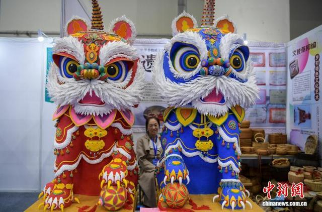 12月26日,泥塑“东方醒狮”亮相博览会。中新社记者 张勇 摄