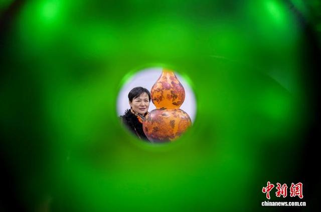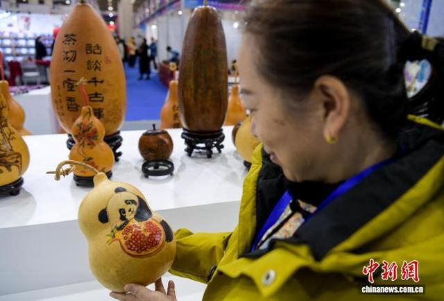 12月26日,观众在展会上观赏“大熊猫葫芦”。中新社记者 张勇 摄