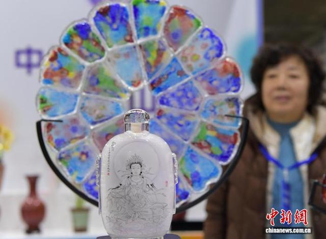 12月26日,观众在展会上观赏内画艺术。中新社记者 张勇 摄