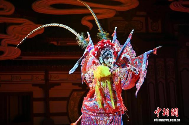 12月26日晚,广州市海珠区,沉浸式岭南饮食文化体验餐厅的粤剧表演。据介绍,该餐厅为消费者推出用餐前的古装换装、妆造等体验,宴席全程穿插粤剧、醒狮、武术、广绣等表演,让消费者沉浸式感受岭南文化。中新社记者 陈楚红 摄