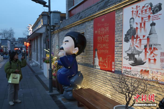 12月26日,“白塔迎新春·欢喜中国年暨东西岔文化消费节”在北京西城启动。中新社记者 富田 摄本次活动将持续至2026年3月3日。活动核心板块“读鲁迅”,将文学经典融入胡同肌理,在西城区宫门口二条,一比一复刻的“三味书屋”带人们重回鲁迅的启蒙岁月;毗邻的“百草园”复现名篇中的草木芳华,并设“百草寻味区”,让游客在黄酒醇香中触摸绍兴风物;6个绍兴Q版迅哥和绍兴原创系列文创产品也来到白塔寺片区,这是绍兴Q版迅哥首次走进北京胡同,在北方“过大年”。
