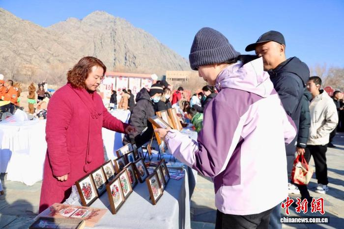 游客了解选购非遗产品,近距离感受传统文化魅力。 张婕 摄活动现场的互动体验区让游客“沉浸式”感受冬日银川的烟火气与文化味。银川好物展示区集中展销贺兰山东麓葡萄酒、枸杞、牛羊肉等特色产品,游客边尝边买。非遗文创展示区集中呈现岩画主题文创产品,让游客近距离感受银川地域文化的独特魅力。“塞上暖冬”长桌宴免费为游客提供清炖羊肉、羊杂汤及围炉煮茶等特色美食,搭配岩画拓印体验、特色IP巡游、“文旅红包墙”打卡等互动项目,成为游客定格冬日快乐的热门打卡点。
