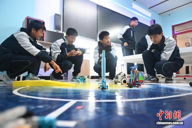 2025年12月18日,在位于甘肃省临夏回族自治州积石山县灾后恢复重建的积石山县第五中学内,学生进行机器人编程学习。李亚龙 摄