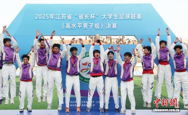 图为江苏师范大学队球员在领奖台上庆祝。中新社记者 泱波 摄